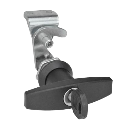 E+G lås, stål forzinket, T-greb /ens nøgler, sort, m/beslag